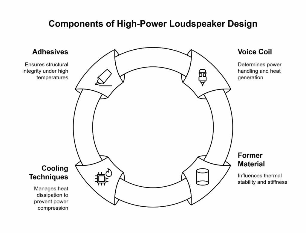 Practical note. For SKUs marketed as “high-power” or “party-proof,” specify coil height, former, adhesives, and cooling techniques together; avoid asking for “more watts” without a thermal path.